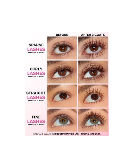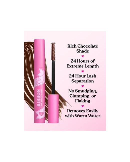 Define and lengthen the look of each lash with Too Faced Ribbon Wrapped lash mascara, featuring a tubing formula designed to help stretch, lift, and separate with precision. Lightweight tubes coat lashes from root to tip for added length and smudge-resistant wear, while warm water allows for clean, easy removal.