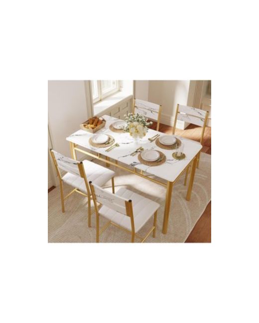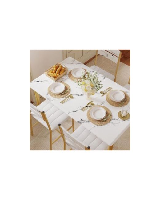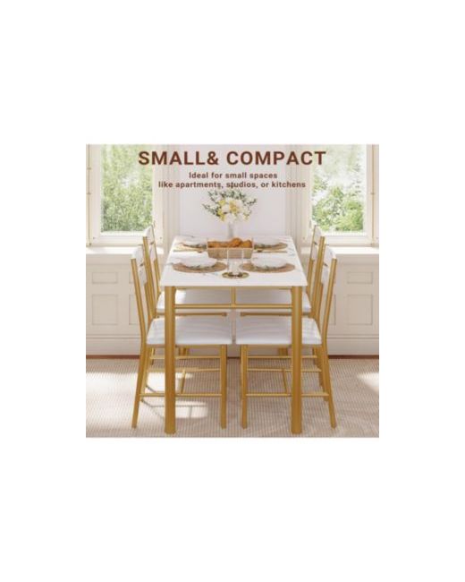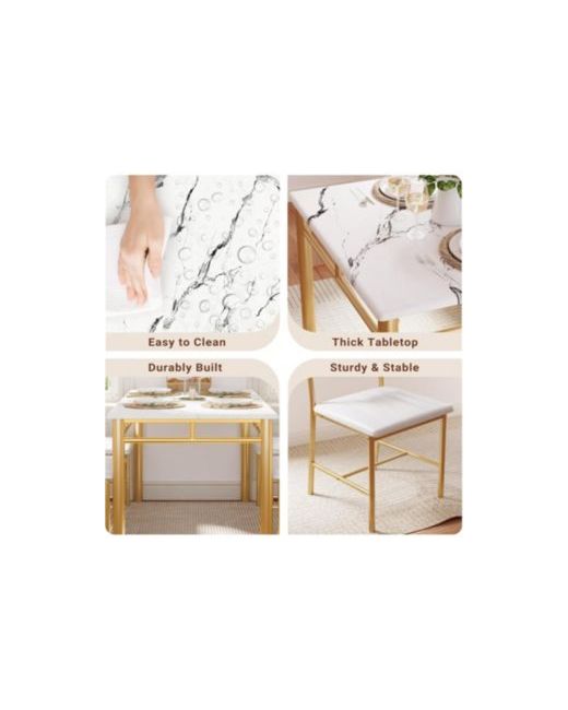 This functional dining table set includes a dining table and two dining chairs. The small dining table fits 4 people for quick workday snacks, morning coffee, or couple gatherings. Chairs offer support with high backrests and thick padded seats for comfortable seating.