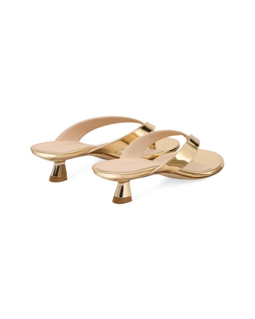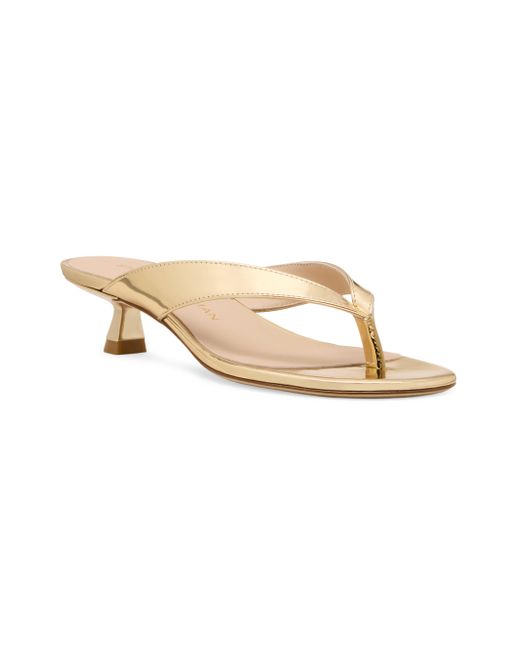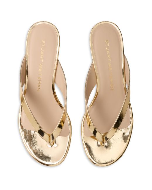 Made in Spain, Stuart Weitzman's Rio sandals are crafted of leather with a high-shine, mirrored finish. This sleek pair is set atop a 35mm kitten heel. Open toe Slips on Leather upper Leather lining Leather sole Made in Spain SIZE Kitten heel: about 1.4" (35mm) ABOUT THE BRAND Designer Stuart Weitzman started his career designing for his father's shoe company, before launching his own brand in 1986. Known for his glamorous pumps and over-the-knee boots, Weitzman has also incorporated unique materials in his designs, ranging from Lucite and wallpaper to cork, vinyl and even gold. Today, the label continues to create classic, feminine silhouettes that balance both comfort and style. Women's Shoes - Stuart Weitzman W Shoes > Stuart Weitzman > Saks Fifth Avenue. Stuart Weitzman. Color: Platino. Size: 9.