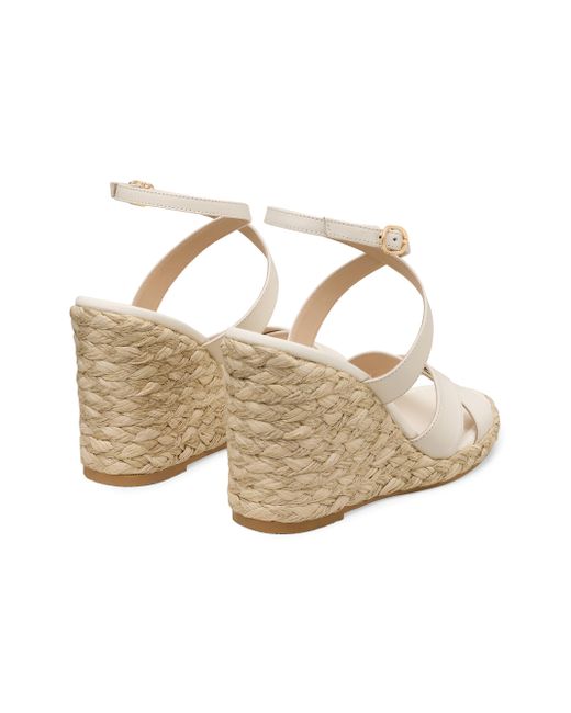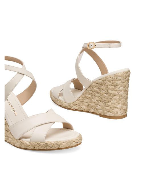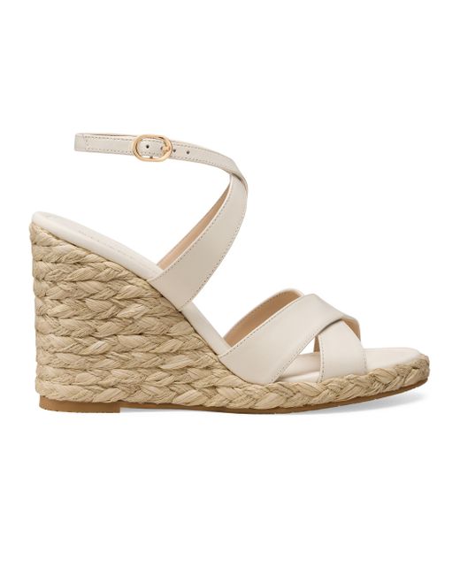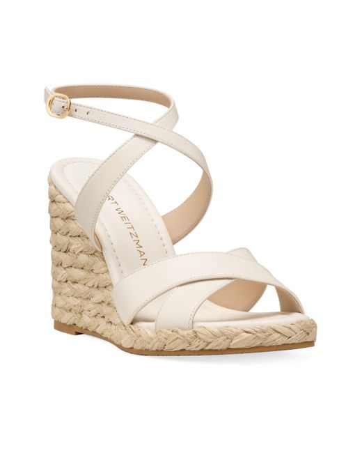 The Alyssa wedge sandals from Stuart Weitzman feature leather straps with a subtle cross-over design at the toe. The high wedge heel is defined by a chunky, braided raffia texture for a rustic, summery contrast. Open toe Buckle closure Leather upper Leather lining TPU sole Made in Spain SIZE Wedge: about 4" (100mm) Platform: about 0.75" (20mm) ABOUT THE BRAND Designer Stuart Weitzman started his career designing for his father's shoe company, before launching his own brand in 1986. Known for his glamorous pumps and over-the-knee boots, Weitzman has also incorporated unique materials in his designs, ranging from Lucite and wallpaper to cork, vinyl and even gold. Today, the label continues to create classic, feminine silhouettes that balance both comfort and style. Women's Shoes - Stuart Weitzman W Shoes > Stuart Weitzman > Saks Fifth Avenue. Stuart Weitzman. Color: Cream. Size: 10.