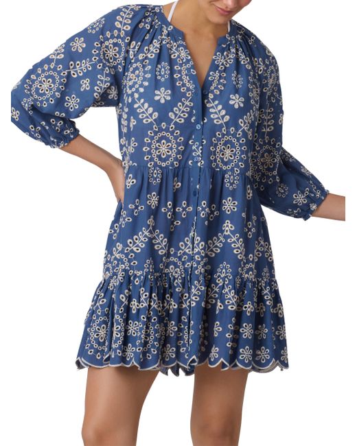 This Shoshanna minidress is crafted of cotton and designed with an elegant floral print. Split neck Long sleeves Button-front closure 100% cotton Dry clean Imported SIZE & FIT Model measurements: 5'10" tall Model is wearing a US size Small ABOUT THE BRAND Founder and Creative Director Shoshanna Gruss started her namesake line in 1998 and has been delivering bright and happy creations ever since. A New York City native, Gruss cut her teeth developing lingerie and swimwear, where she mastered fabric sourcing and garment construction. Combining her background in art and attention to detail, she produces distinct ready-to-wear, evening and swimwear. Outerwear And Swimwear - Contemporary Swim > Shoshanna > Saks Fifth Avenue. Shoshanna. Color: Chambray. Size: Small.