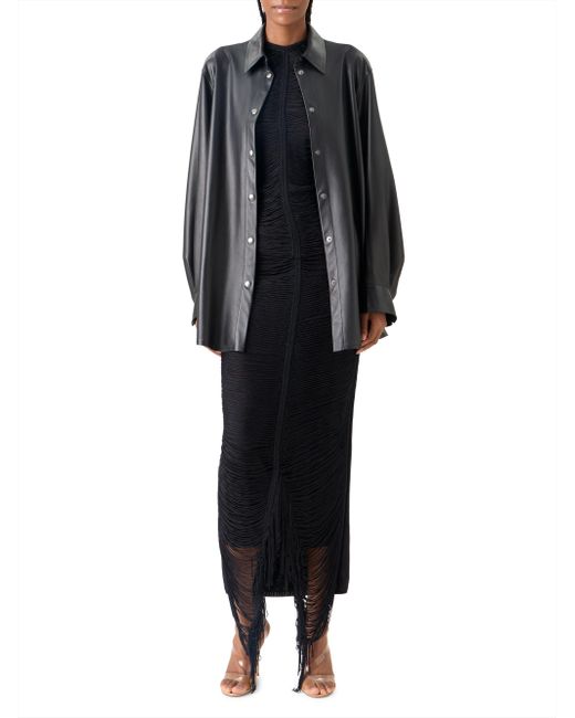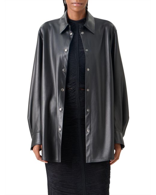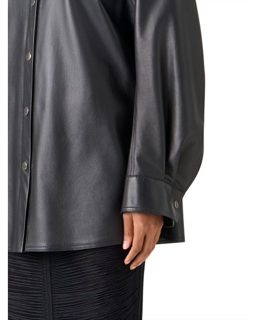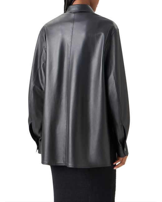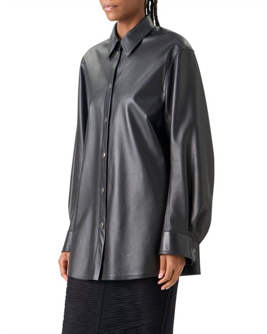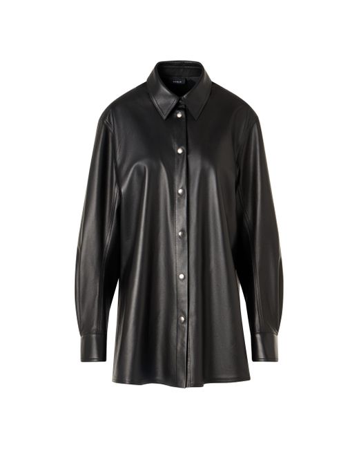 Cut in an oversized silhouette, this Akris leather shirt features relaxed drop shoulders, side slits, and button cuffs. Spread collar Drop shoulders Long sleeves, button cuffs Side slits Button-front closure 100% leather Lining: 100% cupro Dry clean by leather specialist Imported SIZE & FIT Model measurements: 5'10" tall Model is wearing a US size 4 ABOUT THE BRAND Founded in 1922 in St. Gallen, Switzerland, the name Akris was derived from founder Alice-Kriemler Schoch's initials. The entrepreneurial designer first started designing dotted aprons with intricate embroidery and soft cotton, which quickly grew into a full line of ready-to-wear. Almost 100 years later, the brand is now helmed by her grandsons. Creative Director Albert Kriemler continues to pay homage to his grandmother through polka-dot lined clothing, luxe fabrications and modern design-which now include sleek accessories like the cult-favorite AI trapezoidal handbag. Advanced European - Akris > Akris > Saks Fifth Avenue. Akris. Color: Black. Size: 8.
