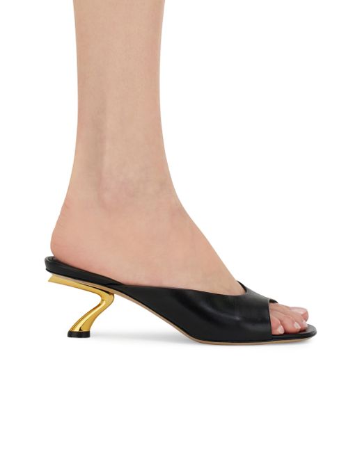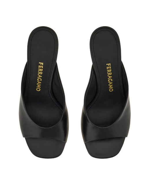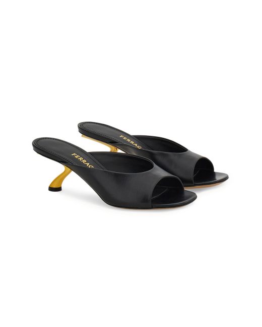 The Igea mules from FERRAGAMO are crafted of leather, featuring a 55mm goldtone, slanted heel and an open toe. Open toe Slips on Leather upper Leather lining Leather sole Made in Italy SIZE Slanted heel: about 2.20" (55mm) ABOUT THE BRAND Italian designer Salvatore Ferragamo began his journey in 1927 in Italy with a vision of creating the world's most beautiful shoes. Since its inception, Ferragamo has expanded to include clothing, accessories and beauty under the creative direction of Maximilian Davis-who brings a minimalist-meets-maximalist aesthetic to the brand. Women's Shoes - Ferragamo W Shoes > Ferragamo > Saks Fifth Avenue. FERRAGAMO. Color: Nero. Size: 6.