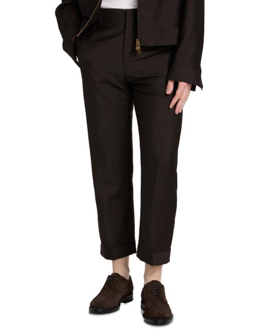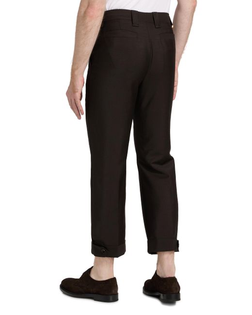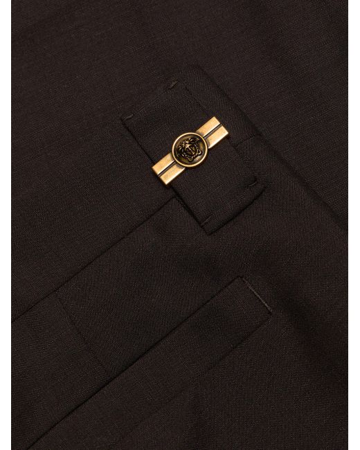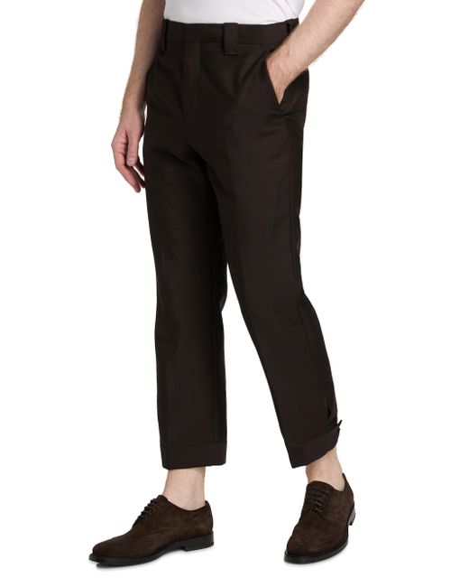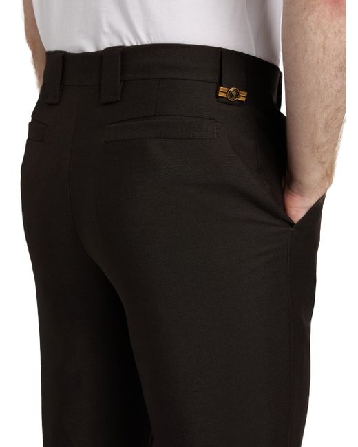 Crafted of a lightweight wool and mohair blend, these Versace trousers are styled in a crease-front, tapered-leg silhouette with rolled cuffs. Belt loops Crease front Side slant pockets Back welt pockets Rolled cuffs Zip fly, button closure 73% wool/27% mohair Lining: 100% cotton Dry clean Made in Italy SIZE & FIT Model measurements: 6'2" tall, 31" waist Model is wearing a US size 32 ABOUT THE BRAND Founded in 1978, Versace is instantly recognizable by the signature Medusa head logo, chosen by founder Gianni Versace for its Greek symbolism. The Italian label is known for its luxe, bold clothing, sensual silhouettes and accessories-think gilding, oversized logos and punchy prints. With a fresh vision, Chief Creative Officer Dario Vitale carries on Versace's strong identity through daring takes on the classic codes of the house. Men Advcd Dsgnr - Mens Versace Rtw > Versace > Saks Fifth Avenue. Versace. Color: Dark Chocolate. Size: 32.