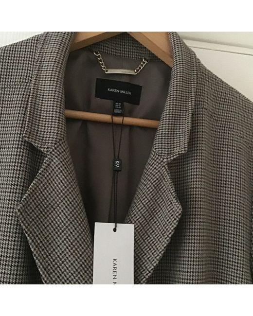 Stylish Tailored Karen Millen Mid Length Coat size 20. Featuring Micro Brown/Grey Check Pattern and Buttons,- Length Centre Back 41 inches