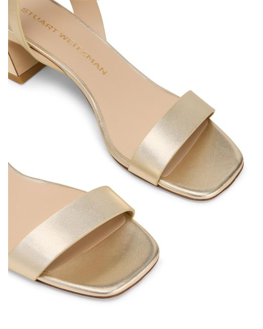 Crafted of leather, Stuart Weitzman's Sai Sandals incorporate an open toe, a 50mm flared block heel and an adjustable ankle strap with an oversized tonal buckle closure. Open toe Buckle closure Leather upper Leather lining Leather sole Made in Spain SIZE Heel: about 2" (50mm) ABOUT THE BRAND Designer Stuart Weitzman started his career designing for his father's shoe company, before launching his own brand in 1986. Known for his glamorous pumps and over-the-knee boots, Weitzman has also incorporated unique materials in his designs, ranging from Lucite and wallpaper to cork, vinyl and even gold. Today, the label continues to create classic, feminine silhouettes that balance both comfort and style. Women's Shoes - Stuart Weitzman W Shoes > Stuart Weitzman > Saks Fifth Avenue. Stuart Weitzman. Color: Light Gold. Size: 7.