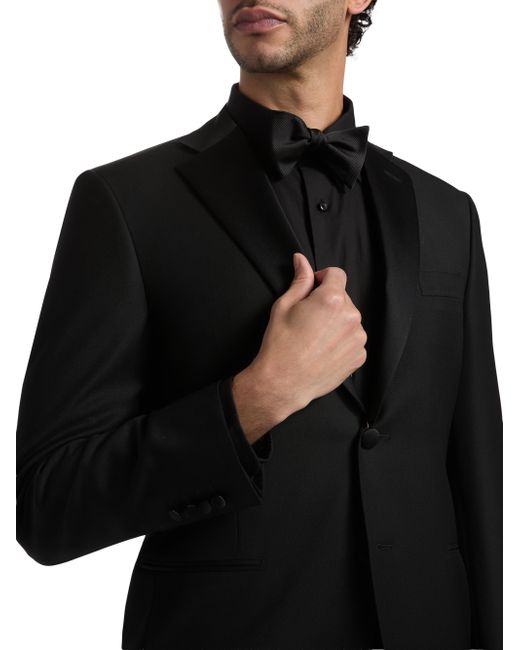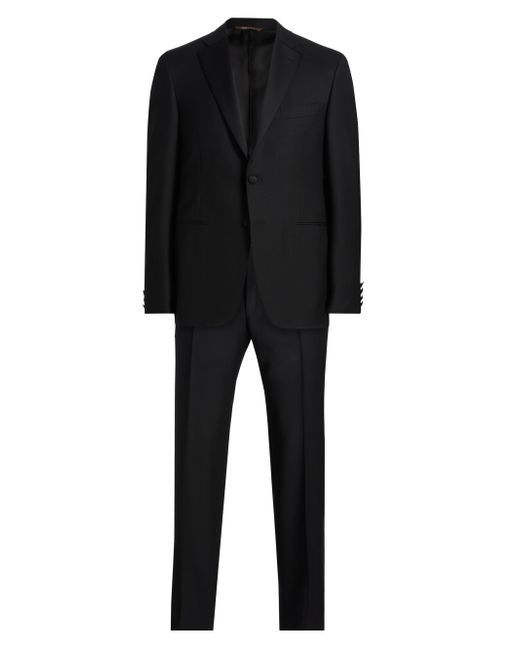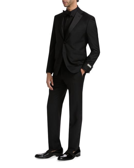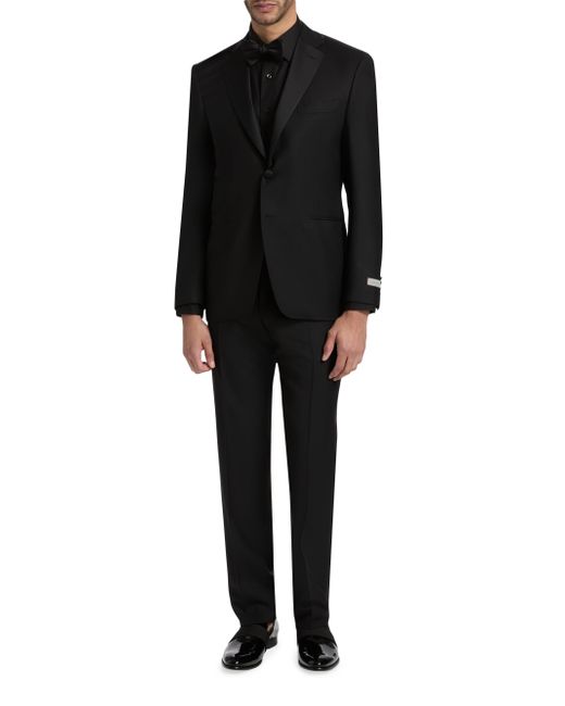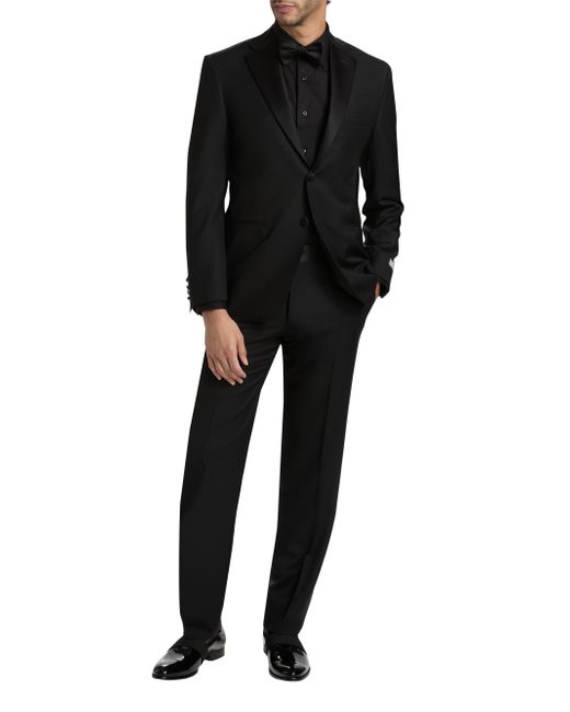 Crafted of Italian wool, this single-breasted tuxedo from Canali showcases a classic design featuring a two-button jacket with satin notch lapels and slim-fit straight-leg pants. 100% wool. Dry clean. Made in Italy. JACKET Notch lapel Side welt pockets Long sleeves Two-button front closure PANTS Zip fly, hook closure Side slip pockets Back welt pockets SIZE & FIT About 28" from shoulder to hem Model measurements: 6'2" tall, 40" chest, 31" waist Model is wearing a US size 32. Men Luxury Coll - Mens Canali > Canali > Saks Fifth Avenue. Canali. Color: Black. Size: 48.