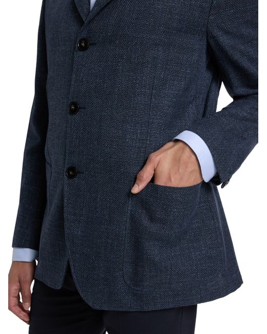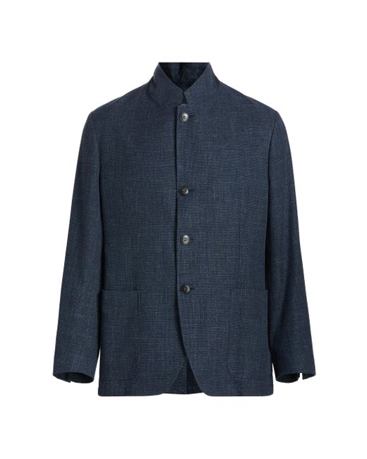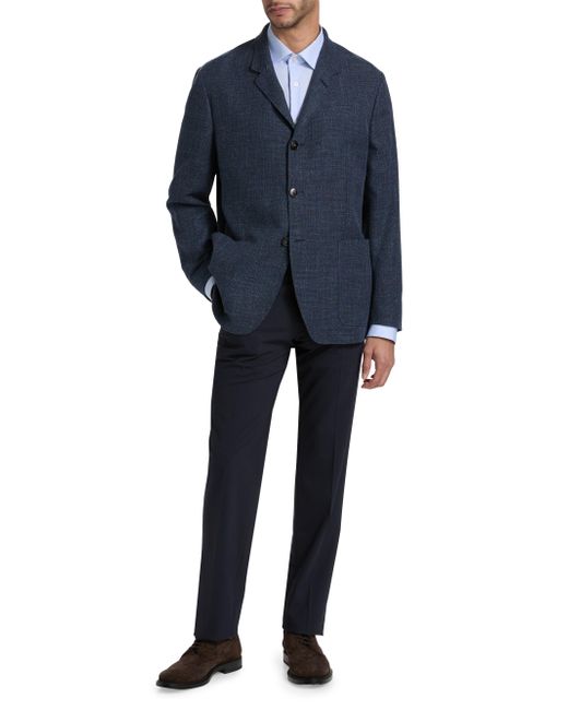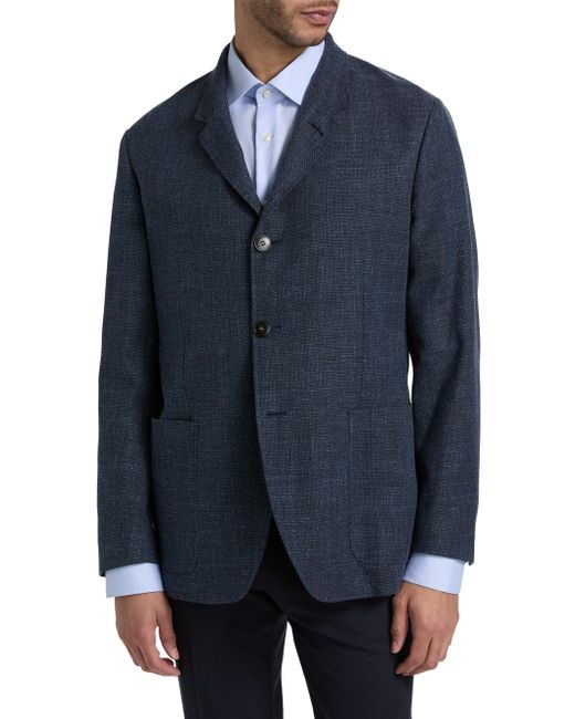 Crafted of woven textured cotton, this Canali Hybrid jacket features a four-button front closure and large patch pockets. A sharp notch lapel completes the tailored look. Notch lapel Long sleeves, button cuffs Chest welt pocket Side patch pockets 100% cotton Dry clean Made in Italy SIZE & FIT About 25" from shoulder to hem Model measurements: 6'2" tall, 40" chest, 31" waist Model is wearing a US size 40R. Men Luxury Coll - Mens Canali > Canali > Saks Fifth Avenue. Canali. Color: Navy. Size: 40.