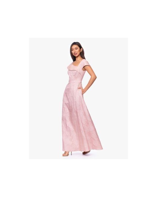 Make a striking entrance in this Xscape ball gown with an asymmetrical square neckline for modern elegance. The back zipper ensures effortless dressing, delivering a clean finish.
