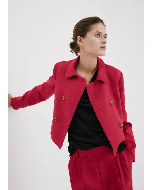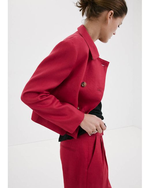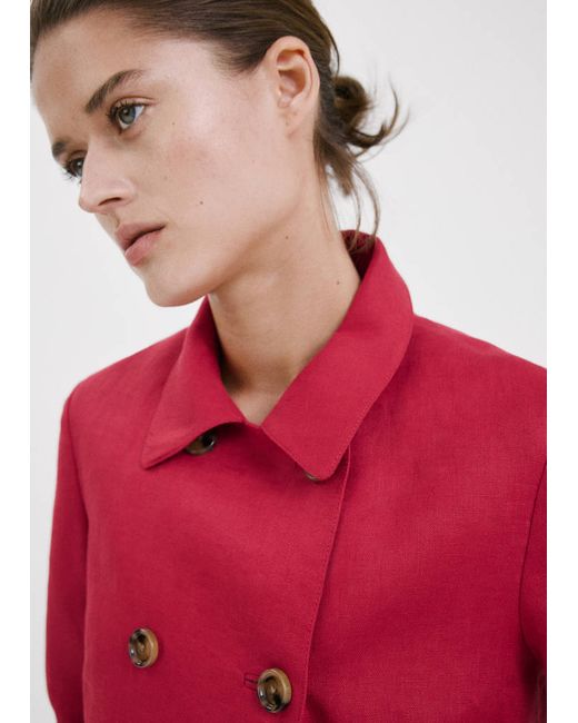 100% linen fabric, Straight design, Shirt collar, Long sleeves, Two side welt pockets, Double button fastening, Total look