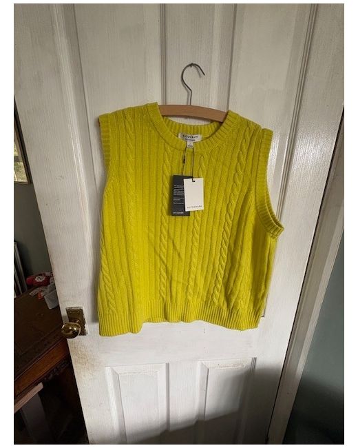 The vest is a Large and the cardigan is a size 16. Sadly now too large after weight loss. Wonderful colour for spring.