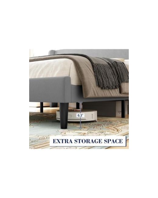 This king bed frame features an elegant wingback headboard with vertical stripes and light grey velvet upholstery, two storage pockets provide extra bedside convenience, and sturdy wood slat support ensures durability without the need for a box spring, easy to assemble, it s the perfect blend of modern style and practical storage.