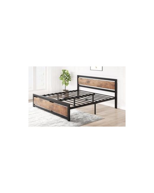 This full-size bed frame features an industrial-style platform with a retro brown headboard. Easy assembly makes setup simple, while the sturdy structure eliminates the need for a box spring. Perfect for updating your room with vintage flair and reliable support.