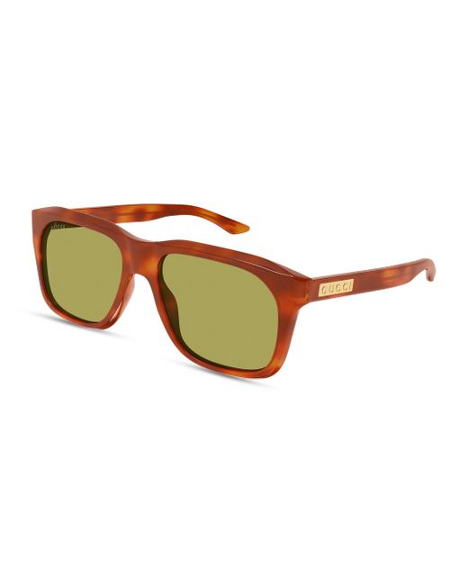 From the Gucci Flag Collection. These wide square sunglasses from Gucci have a classic look and a logo plaque at each temple. 100% UV protection Solid lenses Includes case and cleaning cloth Acetate Made in Italy SIZE 55mm lens width 17mm bridge width 145mm temple length ABOUT THE BRAND First launched in 1921, the Italian luxury fashion house quickly became known for its fine leather craftsmanship and accessories. Today, under Demna Gvasalia, the visionary brand continues to redefine fashion trends, while celebrating creativity and innovation. Gucci's contemporary designs include shoes, clothing and accessories-often boasting the distinctive Horsebit motif. Soft Accessories - Mens Sunglasses > Gucci > Saks Fifth Avenue. Gucci. Color: Brown Green.