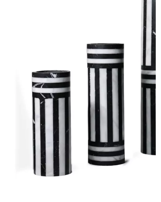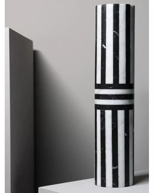 black/white vertical striped pattern cylindrical design This piece is handmade, meaning your purchase is unique and may vary slightly from the item pictured.