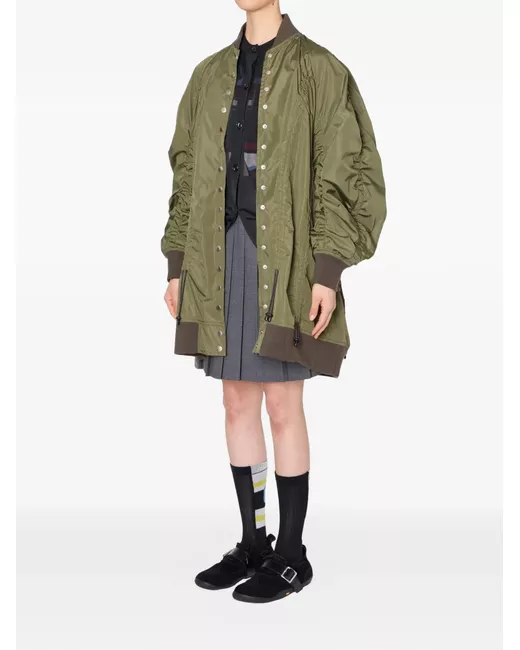 Green button-fastening bomber jacket
