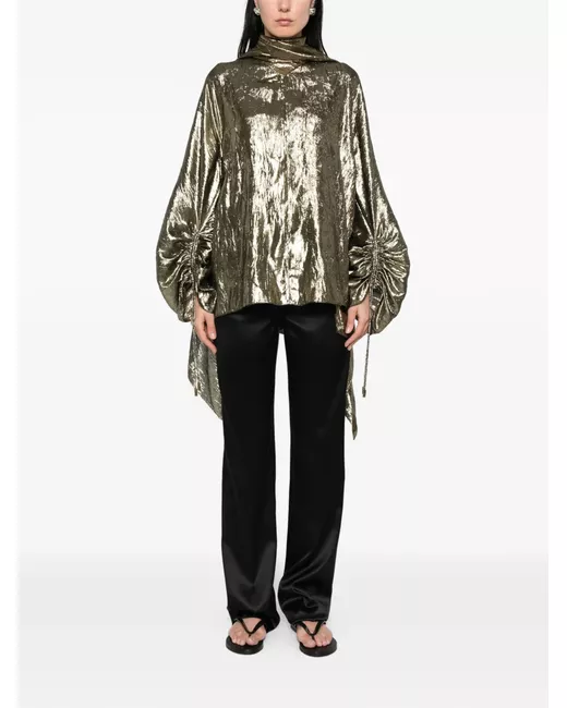 golden-tone scarf button fastening long sleeves asymmetric hem crinkled effect