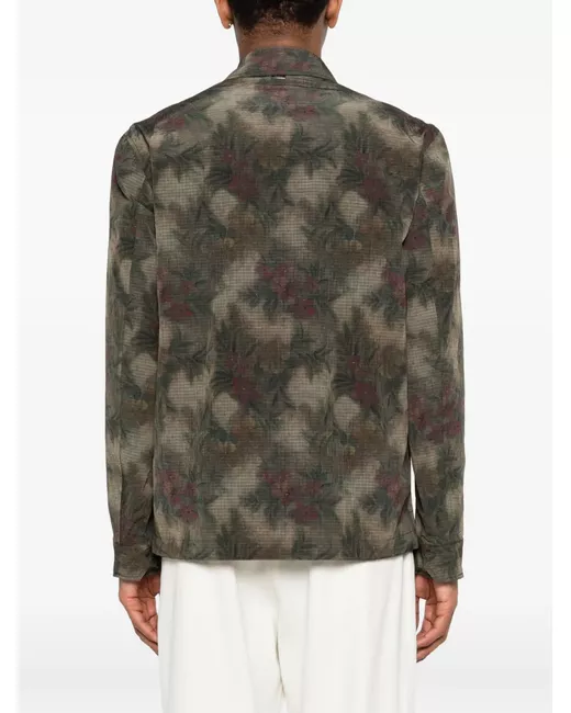 brown floral print zip fastening point collar long sleeves drawstring hem