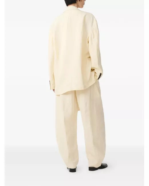 beige front patch pockets three-button front notched lapels buttoned cuffs