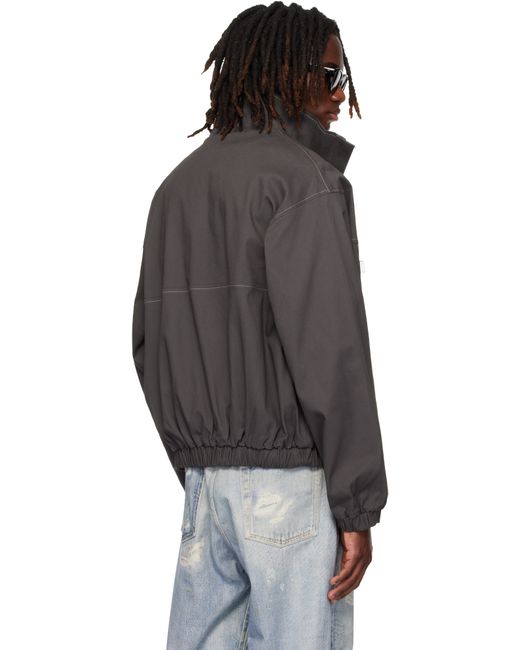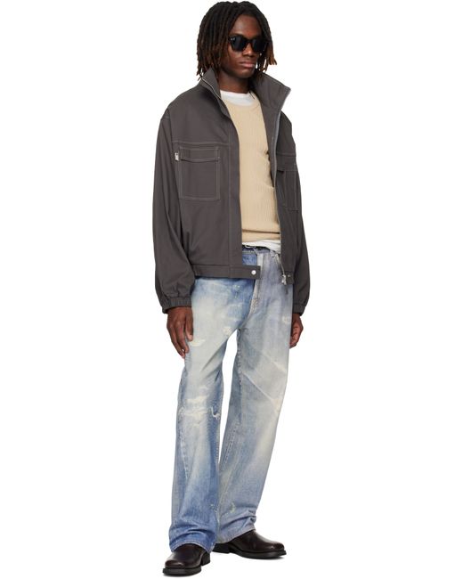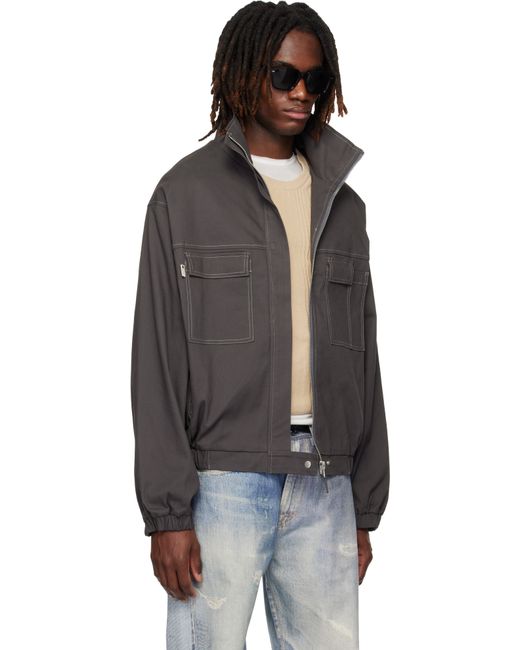 Stretch cotton twill jacket. · Stand collar · Concealed zip closure · Flap pockets, logo flag, and pen slot at chest · Zip pockets at waist · Press-stud tab at hem · Elasticized hem and cuffs · Dropped shoulders · Logo embroidered at back collar · Welt pocket at interior · Full herringbone lining · Contrast stitching in off-white Supplier color: Grey Blue
