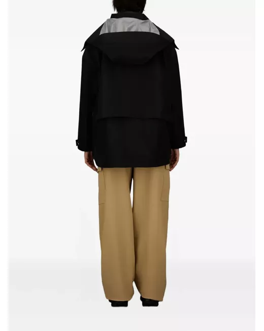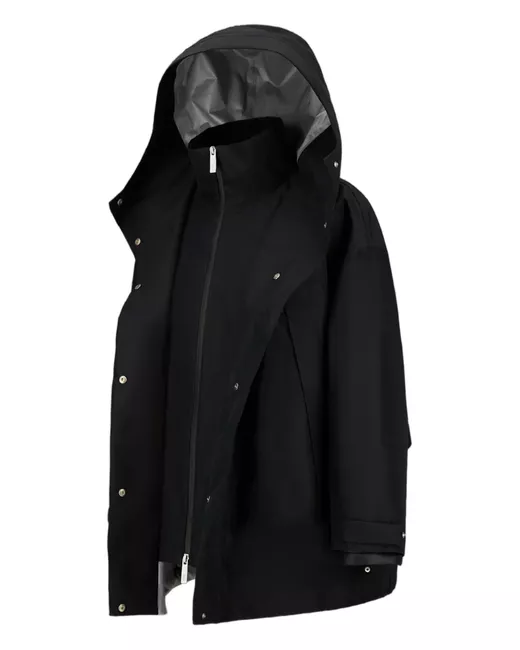 black layered design button fastening adjustable hood long sleeves double cuffs
