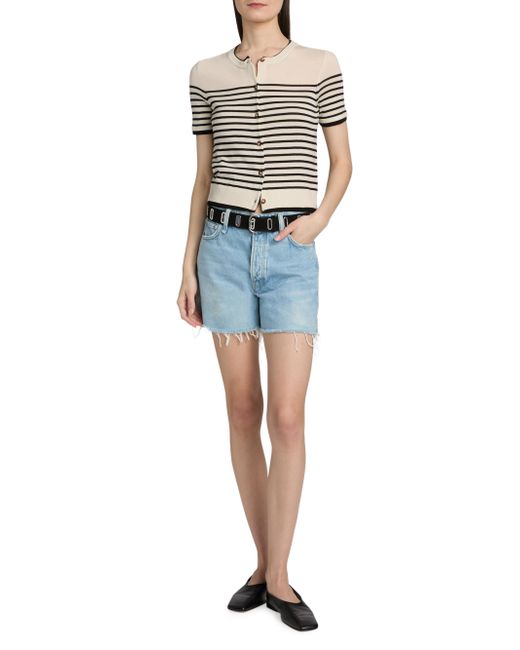 Crafted of rigid cotton denim, the Vintage shorts from rag & bone feature a cut-off design that gives the hem a raw-edge effect. Five-pocket style Button fly 100% cotton Machine wash Imported SIZE & FIT Rise: about 11.4" Inseam: about 4" Leg opening: about 23" Model measurements: 5'10" tall Model is wearing a US size 4 ABOUT THE BRAND In 2002, rag & bone founder Marcus Wainwright combined his British heritage with a downtown-New York aesthetic to set the tone for the label. At the heart of the edgy-yet-laid-back brand is its focus on quality craftsmanship and attention to detail. The epitome of cool, off-duty style, it's no wonder the signature second-skin denim is favored by many. Contemporary Sportswear - Denim And Bottoms > Rag & Bone > Saks Fifth Avenue. rag & bone. Color: Narrows. Size: 24.