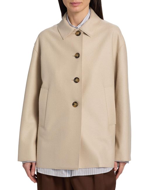 From the Cinzia Rocca Icons Collection. Crafted of lightweight wool, Cinzia Rocca's easy-fit jacket features a timeless spread collar, welt pockets, and tortoiseshell-like buttons. Spread collar Drop shoulders Long sleeves Front welt pockets Button-front closure 100% virgin wool Lining: 100% viscose Dry clean Imported SIZE & FIT About 27.5" from shoulder to hem Model measurements: 5'10" tall Model is wearing a US size 4. Outerwear And Swimwear - Wool > Cinzia Rocca > Saks Fifth Avenue. Cinzia Rocca. Color: Sand. Size: 2.