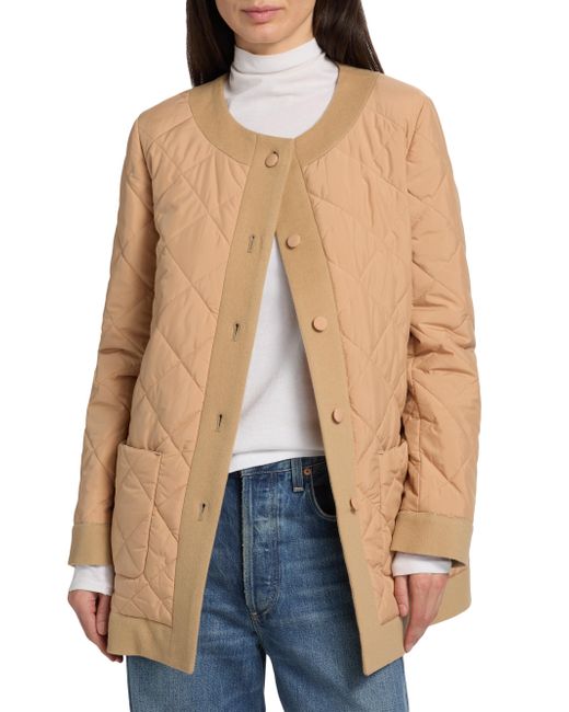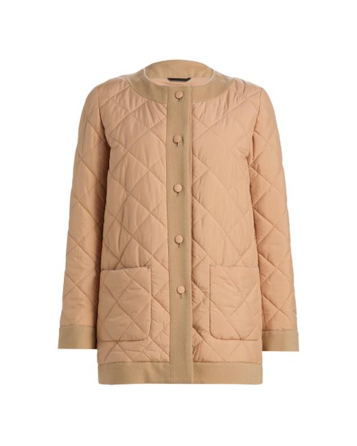 From the Cinzia Rocca Collection. Finished in a diamond quilt, Cinzia Rocca's collarless jacket features large patch pockets and a contrasting trim. Round neck Long sleeves Front patch pockets Button-front closure 100% polyester Combo: 100% virgin wool Lining: 100% viscose Dry clean Made in Italy SIZE & FIT About 29.5" from shoulder to hem Model measurements: 5'10" tall Model is wearing a US size 4. Outerwear And Swimwear - Wool > Cinzia Rocca > Saks Fifth Avenue. Cinzia Rocca. Color: Camel. Size: 2.