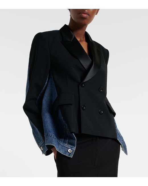Material: 100% wool. Care instructions: dry clean. Made in Japan. Designer color name: BlackxBlue. Material II: 100% cotton. Material III: 100% polyester. Lining: 100% cupro. Wool. Notched lapel. Cuff: buttoned. Pockets: breast pocket, flap pockets. Closure: double-breasted (four buttons). Adjustable tabs at the waist.