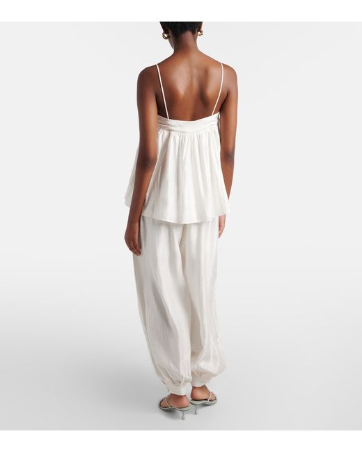 Material: 56% viscose, 44% cotton. Care instructions: hand wash. Made in China. Designer color name: Bright White. Lining: 95% polyester, 5% elastane. Elasticated drawstring waist. Pockets: side slit pockets.