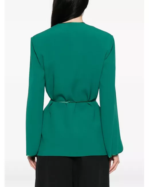 green split sleeves belt V-neck seam detailing gold-tone hardware