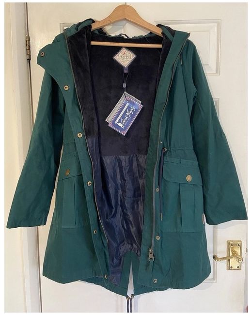 Jack Murphy Lopez Waterproof Parka Pine Green Mid Length Size UK10 BNWT Beautiful quality made waterproof faux fur hooded parka from Jack Murphy in colour pine green, soft navy blue lining, deep outside snap pockets, and inside pocket Waterproof Windproof Breathable Taped seams (drop liner) Outer shell: 100% cotton Lining: 100% polyester Machine washable at 30° Brand new with tags Bought new for £140 Item comes from a smoke and pet free home