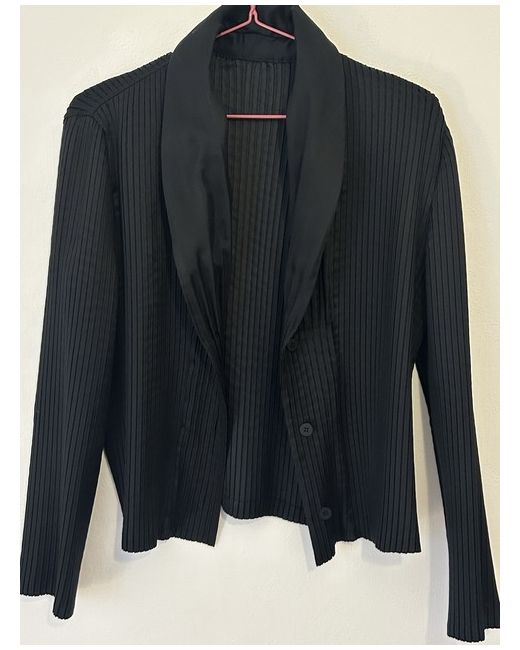 Issey Miyake black pleated blazer black pleated blazer from Issey Miyake, likely from the Pleats Please or Homme Plissé lines. These garments are known for their signature permanent pleating, which makes them lightweight, portable, and resistant to wrinkling. Excellent condition - worn just few times Size 2 (Japanese brand and size) Measurement: Size 2( this is not UK size 2!) Shoulder width -40.5 cm (15 1/2 in) Body width- 45cm (17 1/2 in) Sleeve length- 56cm (22 in) Length- 55.5 cm (22 in) • Design Features: The jacket features a shawl collar (lapel-style), a three- button front closure, and long sleeves. • Material: Typically made from 84% polyester and 16% cotton