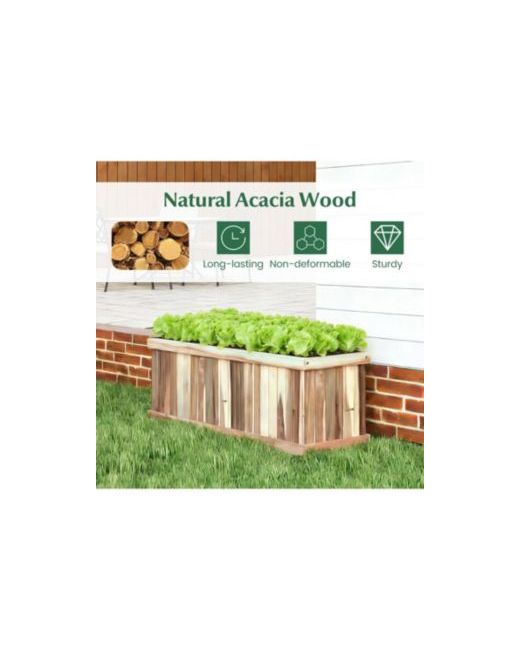 Wooden Raised Garden Bed – Brown Acacia Wood Rectangular Planter Box with Drainage Enhance your outdoor space with this beautifully crafted rectangular raised garden bed made from Brown acacia wood. Known for its durability and rich grain texture, acacia offers long-lasting strength and Brown weather resistance for reliable outdoor use. The spacious planter box provides ample room for growing vegetables, herbs, flowers, or decorative plants, making it ideal for patios, balconies, and backyard gardens. Designed with built-in drainage to help prevent water buildup, it supports proper soil moisture levels and healthy root development. Combining functionality with warm, Brown appeal, this wooden raised bed brings both style and productivity to any garden setting.