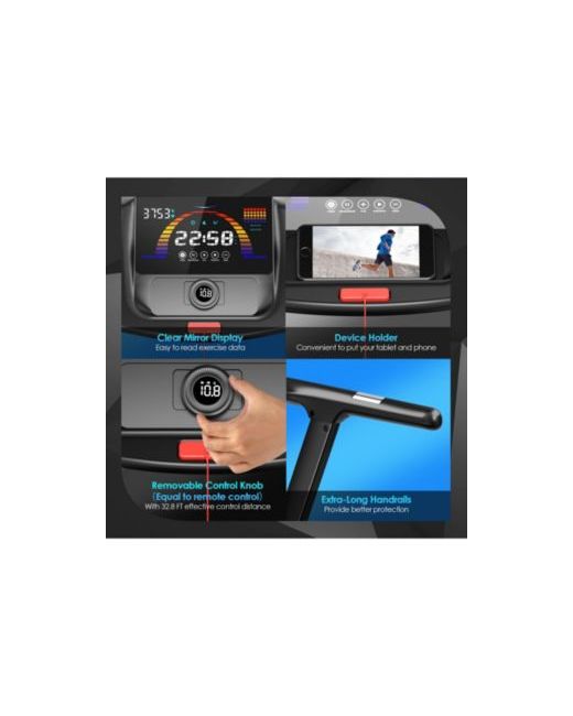 This treadmill features a powerful 4.75 Hp motor with speeds from 0.6 to 10.8 mph and a 0-15% auto incline for versatile workouts. The 51" x 18" running belt with shock absorption, 20 preset programs, Bluetooth speakers, voice-controlled remote, and foldable steel frame offer a safe, interactive, and convenient exercise experience.
