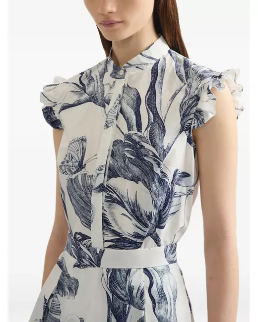 Constance Ruffled Floral-print Silk Crepe De Chine Blouse