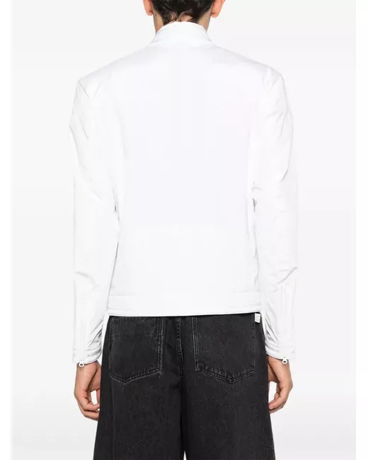white front zip fastening chest logo patch side zip pockets long sleeves round neck