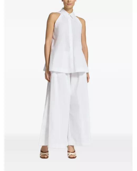 white cotton sleeveless button fastening spread collar