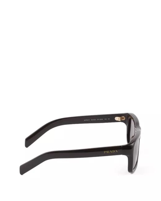 Acetate sunglasses with a rectangular shape that suggests modern elegance. The frame's bold geometric shape is combined with thick rims and curved lines with a contemporary aesthetic, while the temples are decorated with the finely engraved Prada logo. recycled bio-acetate frame front - color: Cigar Brown frame compatible with graduated lenses 100% UVA / UVB protection standard fit lens-nose-temple measurement: 54-20-135 mm article comes with dedicated packaging These glasses come with a protective case.