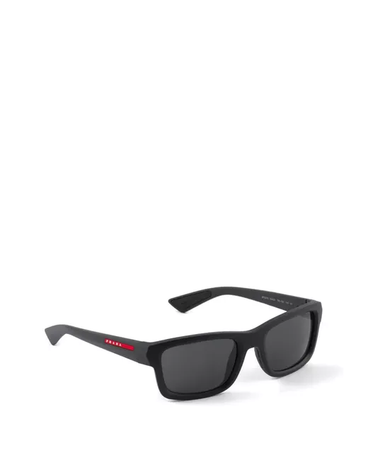 Ultralight nylon fiber sunglasses with a rectangular design. The frame has a large front characterized by curved lines and thick rims. Straight temples enhance the sporty aesthetics of the brand and are decorated with the iconic Linea Rossa. nylon frame front - color: opaque black frame compatible with graduated lenses 100% UVA / UVB protection standard fit lens-nose-temple measurement: 54-21-145 mm article comes with dedicated packaging These glasses come with a protective case.