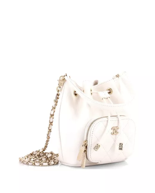 Pending CC Drawstring Quilted Lambskin Small bucket bag