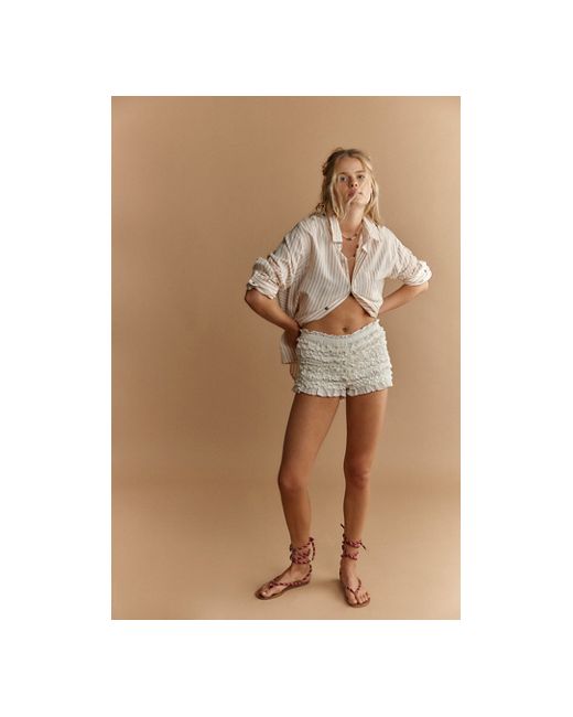 Adorned with ruffles all over, these bloomer shorts from Intimately are endlessly sweet to dress up or down, featuring the softest chiffon in a smocked style with ruffled trim. * Smocked and ruffled chiffon fabrication * Pull-on bloomer shorts * Fitted silhouette * Elasticated waistband Daylight Charm Bloomer Shorts by Intimately at Free People in White Alyssum, Size: XS