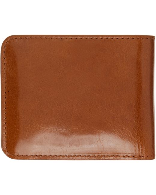 Polished calfskin bifold wallet. · Logo embossed at face · Three card slots and two patch pockets · One note slot · Flap coin compartment · H3.25 x W4.25 x D1 Supplier color: Cognac