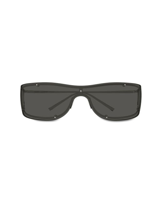 These sunglasses from Saint Laurent are crafted of metal and feature a narrow, soft rectangular shape and logo detailing. 100% UV protection Solid lenses Includes case and cleaning cloth Metal Made in Japan SIZE 99mm lens width 1mm bridge width 115mm temple length ABOUT THE BRAND Founded in 1961, Yves Saint Laurent's groundbreaking styles have become iconic cultural and artistic references, and its founder, the couturier Yves Saint Laurent, secured a reputation as one of the twentieth century's foremost designers. Part of the Kering Group, the House kept true to its identity of absolute modernity and fashion authority. Under the creative direction of Anthony Vaccarello, appointed in April 2016, the House offers a broad range of women's and men's ready-to-wear products, leather goods, shoes, jewelry and eyewear. It is also a major force in fragrances and cosmetics. Soft Accessories - Womens Sunglasses > Saint Laurent > Saks Fifth Avenue. Saint Laurent. Color: Silver Grey.