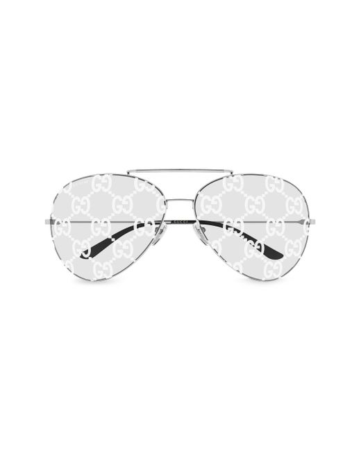 From the Interlocking Collection. These Gucci sunglasses feature an aviator silhouette with a double bridge design and a subtle interlocking G logo detail near the hinge. 100% UV protection Mirrored lenses Adjustable nose pads Includes case and cleaning cloth Metal/acetate Made in Japan SIZE 15mm lens width 65mm bridge width 140mm temple length ABOUT THE BRAND First launched in 1921, the Italian luxury fashion house quickly became known for its fine leather craftsmanship and accessories. Today, under Demna Gvasalia, the visionary brand continues to redefine fashion trends, while celebrating creativity and innovation. Gucci's contemporary designs include shoes, clothing and accessories-often boasting the distinctive Horsebit motif. Soft Accessories - Womens Sunglasses > Gucci > Saks Fifth Avenue. Gucci. Color: Silver Clear.