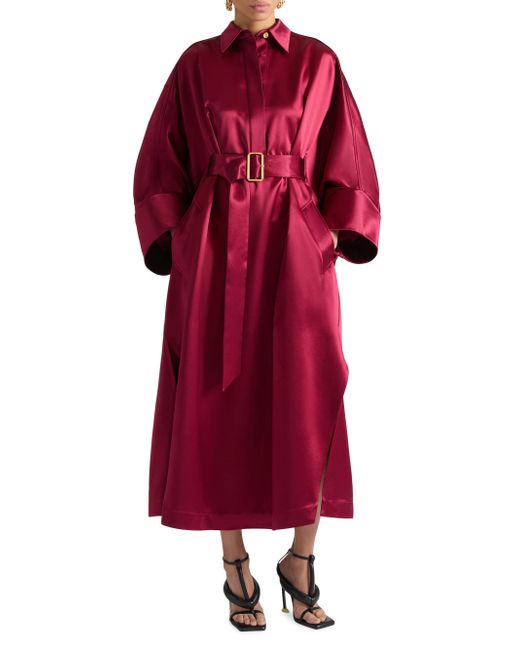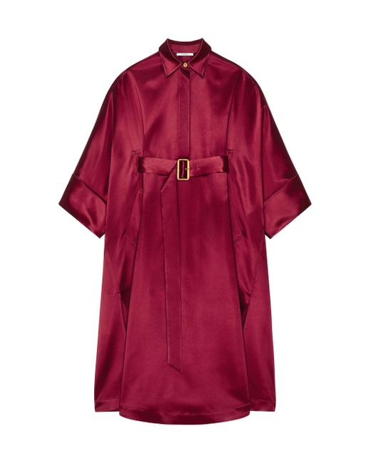 Cocoon long dress in satin. Volume is exaggerated patterns reworked and seams inverted to shape the Cocoon silhouette. Long dress with long sleeves in silk satin duchesse Classic collar Hidden button closure and removable belt Givenchy engraved golden button Cape back detailing Two side pockets Cocooning volume Composition: 100% acetate Made in Italy. Lsd Rtw - Givenchy Rtw > Givenchy > Saks Fifth Avenue. Givenchy. Color: Red Cherry. Size: 4.