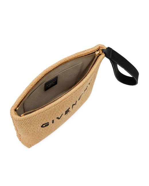 Givenchy pouch in raffia. Zipped closure Gros grain strap with leather finishing Contrasted Givenchy Paris signature embroidered on the front Givenchy Paris patch on the inside One main compartment with one flat pocket inside 8.9 x 3.5 x 2 in. Composition: 52% cotton, 48% polyamide Lining: 90% cotton, 10% polyester Made in Italy. Lsd Handbags - Givenchy > Givenchy > Saks Fifth Avenue. Givenchy. Color: Natural.