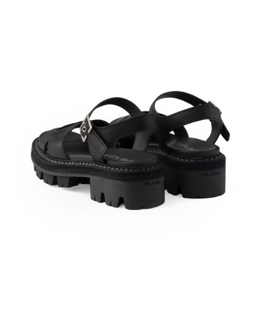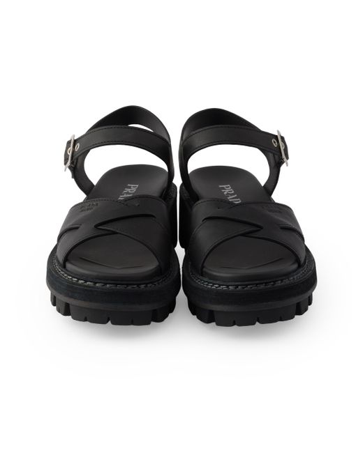 Upper with strap and logo-engraved metal buckle Monoblock rubber sole, 55mm / 2.2'', with hot-stamped logo Lug tread 100% Lamb Leather Imported. Lsd Rtw - Prada Rtw > Prada > Saks Fifth Avenue. Prada. Color: Black. Size: 7.