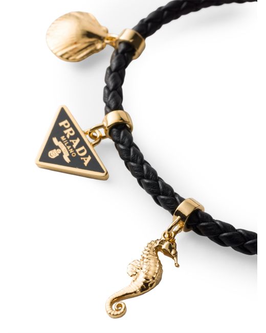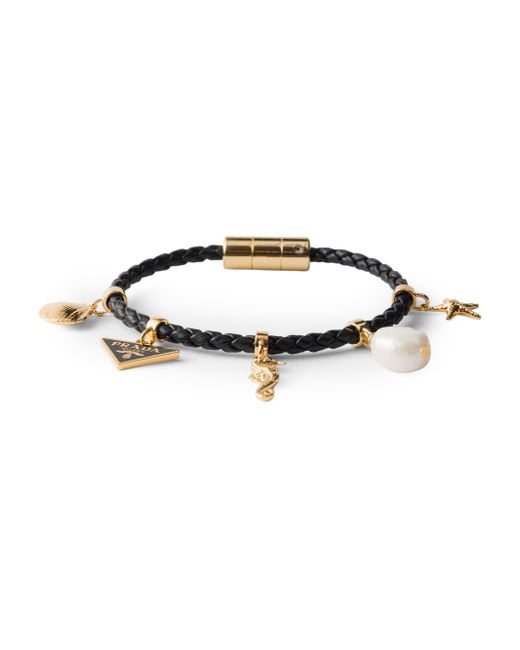 Braided nappa leather charm bracelet. Metal screw clasp on the back Enameled metal triangle logo 100% lamb leather Imported. Lsd Rtw - Prada Rtw > Prada > Saks Fifth Avenue. Prada. Color: Black. Size: Medium.