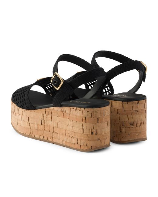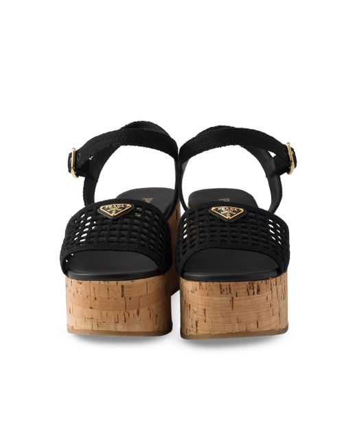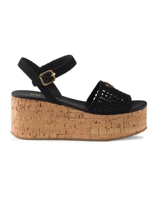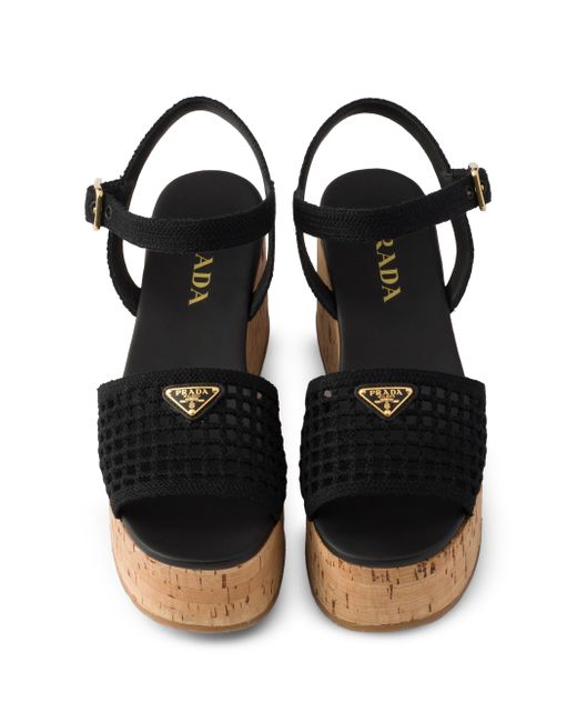 Upper with ankle strap and logo-engraved buckle Monoblock rubber sole with hot-stamped logo Cork-covered wedge heel, height: 75mm / 3'' 95% Cotton, 5% Polyester Imported. Lsd Rtw - Prada Rtw > Prada > Saks Fifth Avenue. Prada. Color: Black. Size: 8.